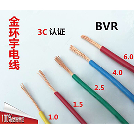 金環(huán)宇BVR 1.5平方電線中文名:銅芯聚氯乙烯絕緣軟護(hù)套電線。1.5表示BVR電線的橫截面積。金環(huán)宇bvr系列電線常用于家裝布線。